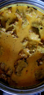 Assembling - Add the finished pakoras in the Kadhi sauce cover the pan and reduce to a low heat. Let it all boil for about 15 minutes under lid.